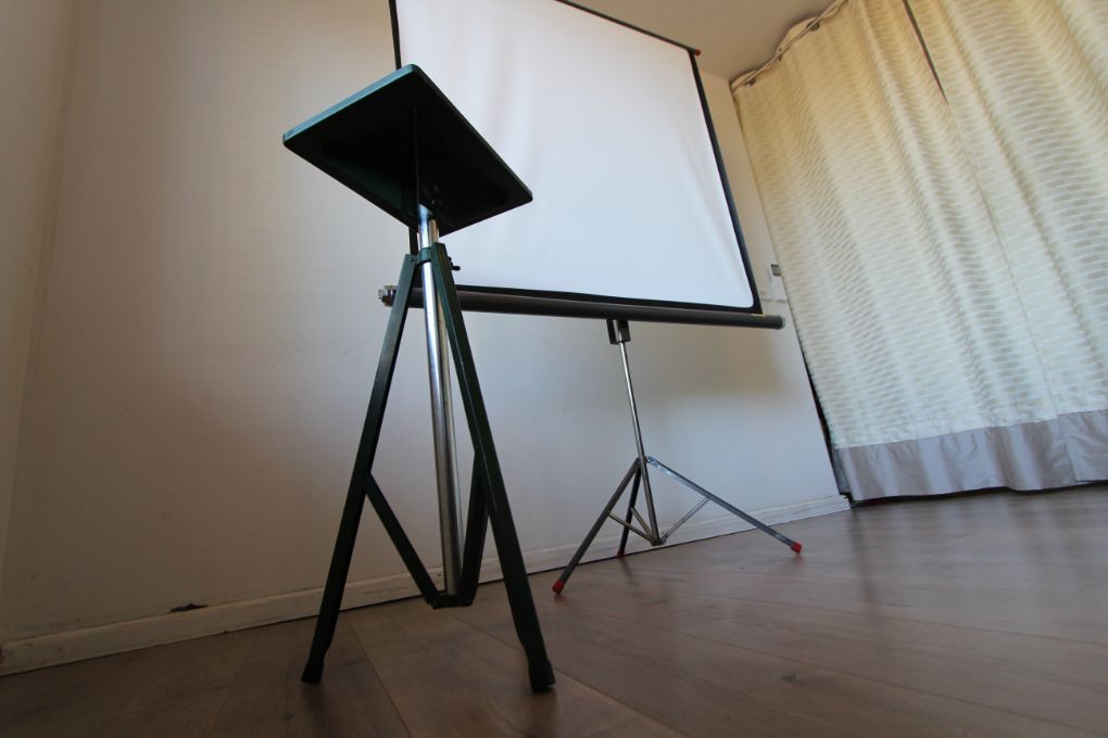 ~ AUCTION ~ RARE ~ Circa 1985 Projector Screen and Projector Stand Combo Retro Vintage Slideshow Projector Slides